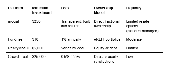 While this structure helped pioneer online real estate access, it often lacks the direct ownership and transparency offered by modern fractional platforms. With mogul, investors hold verifiable ownership shares, enjoy real-time reporting, and maintain visibility into every asset, all while keeping entry requirements low.